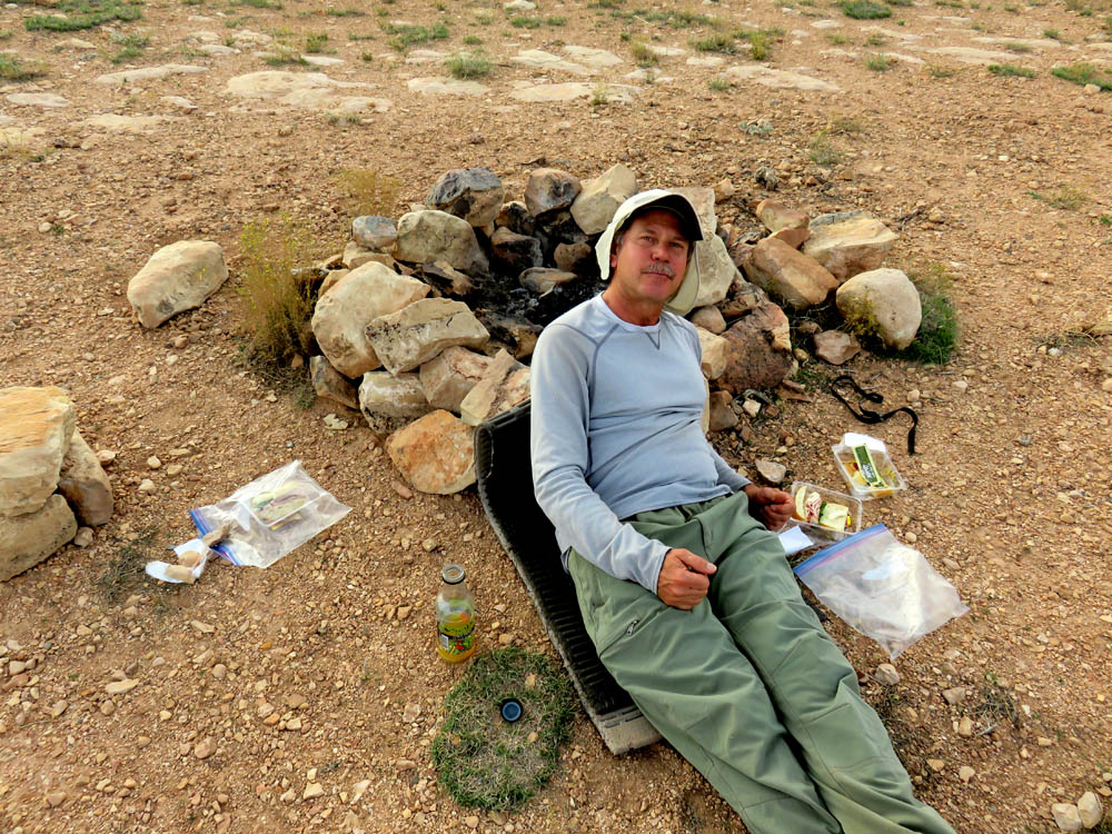 RICHARD RELAXING AT THE TRAILHEAD CAMPSITE
