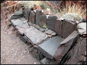 I hustle down to the rock bench at the Phantom Overlook and now feel assured I will make Phantom Ranch before stew time. I reach Phantom Ranch just before six o'clock, taking just under seven hours for the hike back from Clear Creek. I stop by the food pickup window to check on the stew dinner, but they are sold out. I then ask about openings at the dorm. No luck there either. Bummer, I'm going to have to stay at the campground in cold conditions and cook my own supper. I stop by the Ranger Station to make sure it's alright to camp off permit in the campground. I set up my tent, cook supper, and head back to Phantom Ranch to check on breakfast tomorrow, have a beer, and write a few postcards. Fortunately I do get the 7:00 breakfast tomorrow. MAIN INDEX | HIKING INDEX | BACK TO DAY 2 | FORWARD TO DAY 4