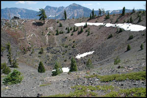 The caldera of Wizard Island is only a small depression. We continue