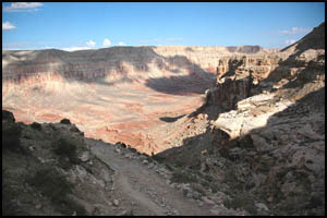 The view from the trailhead is quite good. The first mile of the trail is similar to the upper sections of the Bright Angel Trail and it is easy walking when you only have a day pack.