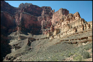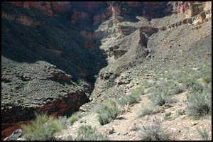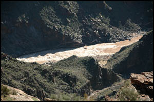 We finally get past that last drainage and make the turn into Ruby Canyon. It is huge, so this may take a while to reach the back side. We eventually reach the water, but there are no campsites to be seen. I rest here while Keith explores upstream a while. He comes back to report that the campsites are another one or two hundred yards upstream on the left.