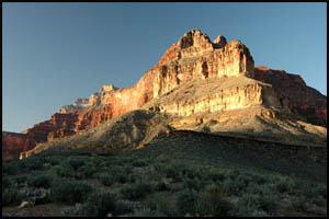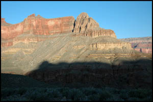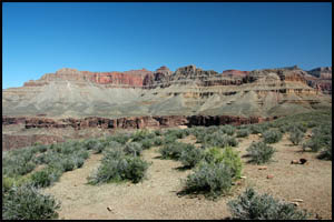 Keith and I are back into our habit from last fall of getting up at 6:30. That allows us to have breakfast, pack, and leave camp before 8:30 each day. We wake up to great morning views from our campsite of the Grand Scenic Divide to the south and Bass Canyon to the west.
