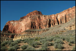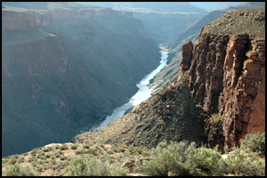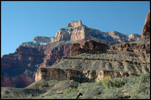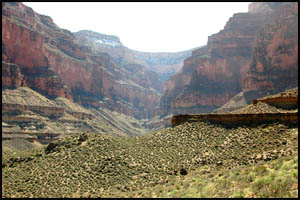 We eventually leave around 8:15. Right away we reach a huge cactus. In fifteen minutes or so, we get our first view today of the Colorado River and pretty soon I find my first Mexican Vervain plant. The Grand Scenic Divide is an impressive ridgeline. Like much of the South Rim on this hike, there is still a lot of snow at the top.