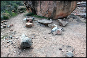 I make my way upstream and set up camp. There is even a nice spot for cooking with rock seats and a little rock table.