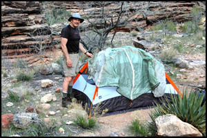 We are headed for Turquoise Canyon tomorrow. Since we have water here, I'm guessing that means croaking frogs tonight also. MAIN INDEX | HIKING INDEX | BACK TO DAY 1 | FORWARD TO DAY 3
