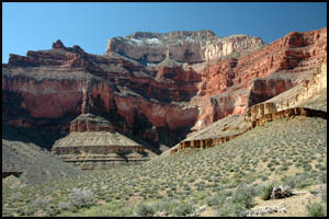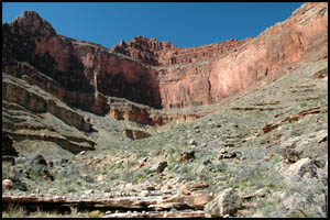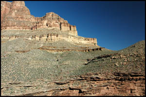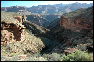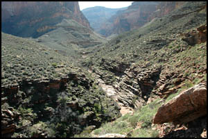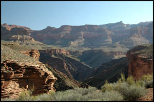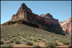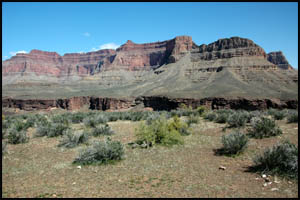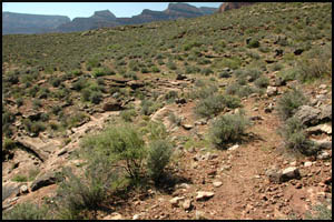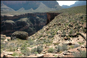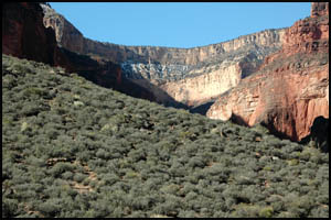 After getting out of this unnamed drainage, we are approaching the Shaler Plateau. This is another area I was hoping would be flat and easy walking. It is about like the Le Conte Plateau and while easier than the standard Tonto Trail, it is not a complete cake-walk. It looks like someone lost their bandana and it snagged on some Blackbrush.