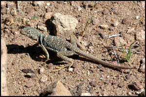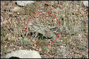 We are just walking along when a bird flies out of a bush I am next to. Geez Louise, that scared the you-know-what out of me. I nearly wet my pants. The bird flies about six or eight feet and sets down on the ground right beside us, remaining motionless. Its camouflage is so perfect that had we not seen it land we would not have known it was sitting there. A few minutes later, I get a good shot of one of the many lizards we see in the Canyon.