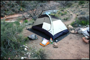 While there is water flowing here, it is much less than any prior canyon. Like last night, I'm expecting the frogs to be croaking here too. Tomorrow we are camping in Agate Canyon, which is only five miles from here, so it should be an easier day. However, our Alaska friends said it was dry, so we will be carrying extra water. MAIN INDEX | HIKING INDEX | BACK TO DAY 2 | FORWARD TO DAY 4