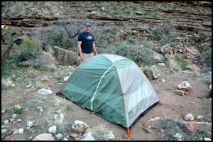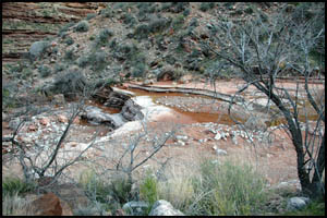 I was hoping this would be a much easier day than the prior two days, but that is not happening. We finally make the turn into Turquoise Canyon. There doesn't seem to be as much water here as there was in Ruby or Serpentine Canyons. We reach the backside and find the campsites on the west side of the creek. There are some nice ledges beside camp, where we sit in the shade until the sun goes behind the ridge.