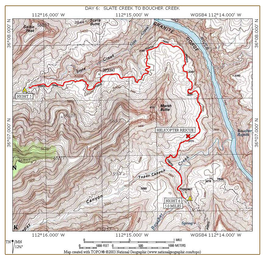 Since the climb up the Boucher Trail is brutally steep, we decide to leave camp by seven o'clock tomorrow morning and beat the heat. MAIN INDEX | HIKING INDEX | BACK TO DAY 5 | FORWARD TO DAY 7
