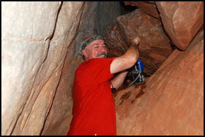 We are looking for water in the "Hidden Pool." In his book, George Steck describes the pool as being at the second cleft on the left. I