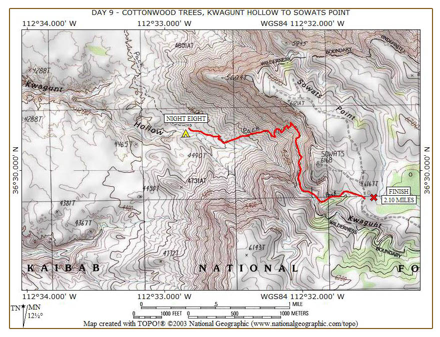 We are up at 4:30, eat, pack, and leave around 6:10 in an effort to avoid the heat and direct sunlight. Our Phoenix friends leave a few minutes later and soon pass us during the climb. I am the slowest of our group up the steep switchbacks, but reach the top of them in about forty minutes. I was expecting the climb out to take much longer.