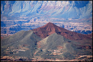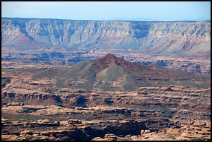 The Cottonwood trees at the base of the descent soon come into view as does Racetrack Knoll far in the distance, my goal for tomorrow. This viewpoint gives me a chance to plan out my descent into Ojojojo Canyon and my ultimate climb out of Indian Hollow.