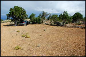 After breakfast at the Jacob Lake Inn, I start the drive to Sowats Point, which takes about one hour. It has been raining off and on all night, but the rain subsides as I reach an empty parking lot. This place was crowded on my last hike from Sowats point. I pack my stuff and start down the trail.