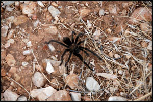 I pass a Tarantula crossing the trail and see one of the few blooming flowers on this entire hike.