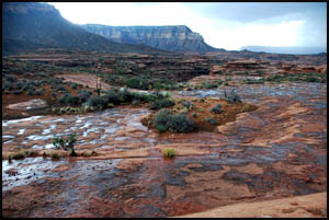 In a little while, the rain stops, so I head down Kwagunt Hollow a short distance and turn south over a small ridge so I can then enter Ojojojo Canyon. With all the recent rain, finding water will not be an issue.