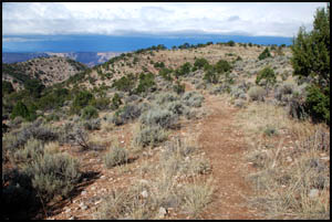 The trail is easy walking and soon heads downhill, eventually going by a very nice Forest Service sign. After that, the trail remains mostly level and loops around to the north for about a mile.