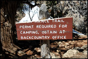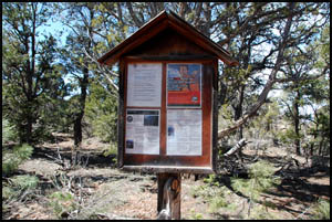 I make one final push up a steep section and reach the New Hance trail sign and information sign nearby. The trail sign wasn't broken my last time by here.