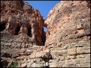 Our first stop of the day at mile 33 is the Redwall Cavern, an opening discovered by John Wesley Powell