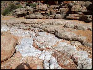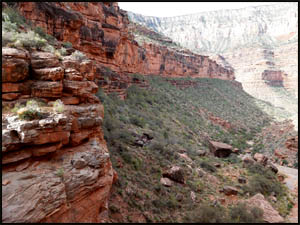 the Supai or Hermit Shale above it and it is these layers that stain the Redwall with