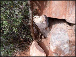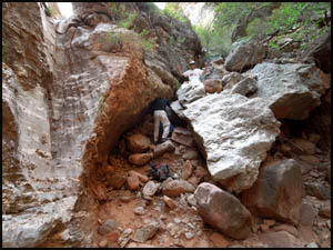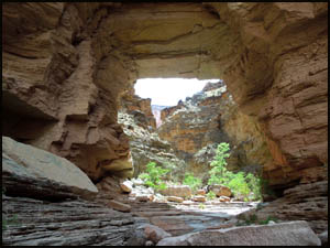 In a few more turns of the creek, we arrive at the Arch. It's walls