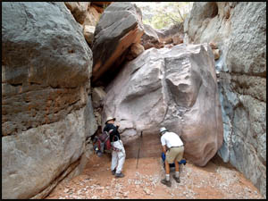 We leave camp and walk down the bed of Royal Arch Creek until coming to a