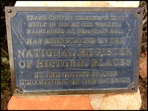 This plaque commemorating the Trans-Canyon telephone line is pretty neat. Installing the poles and lines in 1935 must have been very challenging work. The pipeline work crew has set up their own mini tent camp next to the Ranger Station.