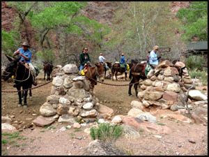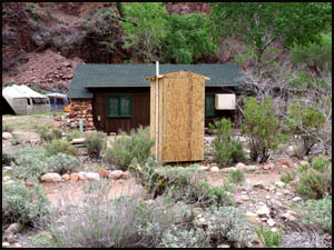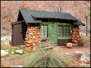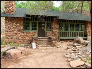 I usually do some kind of day hike on my layover day when I'm down here, but today I'm just going to relax at the Canteen at Phantom Ranch, write postcards, and read books. I have a very pleasant day and consume some adult beverages. I even finish the entire book on Mary Jane Colter.