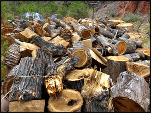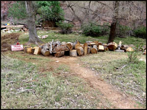 The Park Service also hired someone to cut down a lot of the old cottonwood trees. After more than a century of growth, they were getting old. Many of them looked like they were in danger of falling over. They have commandeered a couple of the campsites to put all the wood in. I wonder what they plan to do with all the wood.