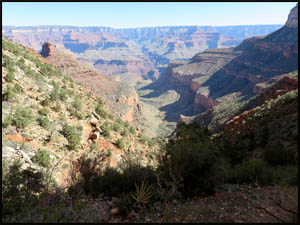 Part-way up the climb to the 3-mile rest house, there is a nice view looking back down on Indian Garden. I am surprised to meet up with the law students at the 3-mile rest house. I expected them to be further up the trail.