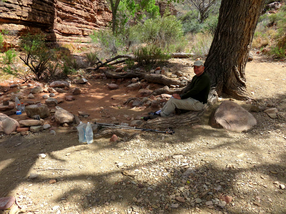 KEITH RELAXING IN CAMP IN THE SHADE OF THE BIG COTTONWOOD TREE