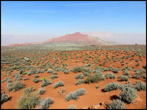 Once upon the Esplanade, we are initially unable to see Racetrack Knoll because a small hill to the west blocks our view, so we start walking in that direction. After we top the hill, we can see Racetrack Knoll in the distance.