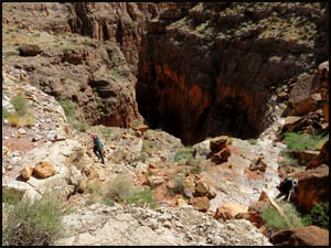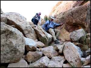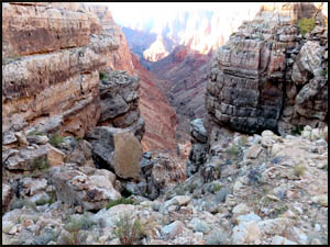 Since I am a little ahead of the others, I sprint to the bottom of this draw and take a short nap on some ledges. The other guys arrive in a little while.