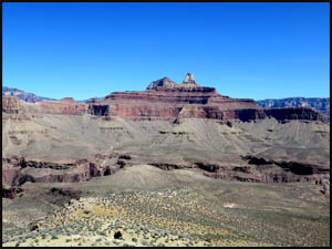 Finally, after all those delays, the mule pack team passes us and Richard and I get to make our way down all the switchbacks. We find one trail distance sign, but I seem to remember that there used to be a lot of other signs displaying the various rock formations encountered. If I am recalling correctly about the other signs, they are all gone now. Zoroaster Temple north of the River is magnificent.