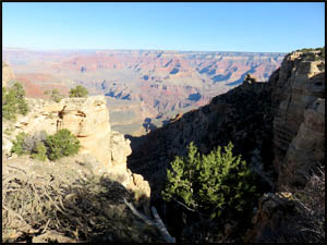 Richard and I drive out to Grandview Point and leave my car there for us to use when we exit here in four days. We drive back to the Maswik, have breakfast, and leave Richard's car in the Backcountry Office parking lot. We then catch the 8:00 Hikers Express Shuttle out to Yaki Point.