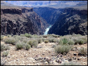 Since this will probably be a dry camp tonight, we each filter water to carry with us. Just before noon, we say goodbye to the girls and continue on toward Boulder. There are more great views to the north. Pretty soon we get our first view of the Colorado River today.