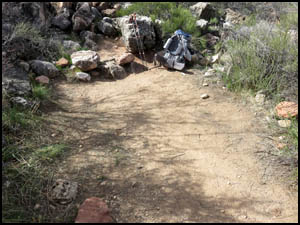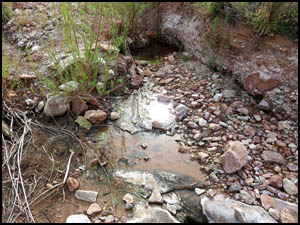 A little later this afternoon Richard discovers flowing water about a hundred yards upstream right in the middle of the creek bed. Had we known this, we would not have loaded up on so much water back at Lonetree.