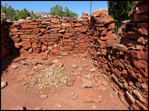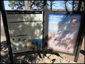 About half-way to the top is a saddle area where I take a break. Richard is already here waiting in the shade. As slow as I am uphill, he probably has been here a long time. There are very nice views to the east from here. A few years ago several of the upper sections of the trail sustained a lot of damage and collapsed after heavy rains. The Park Service went to great lengths during their restoration process to maintain an "all natural" look. Hence, their repairs were made entirely using cedar and juniper trees.