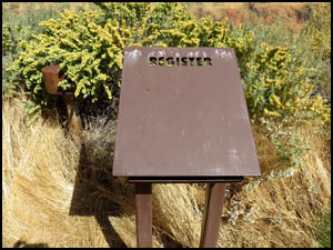 Richard Erbe and I meet at Jacob Lake around 10:00 AM and make camp across the street in the campground. Tomorrow we are driving all the way to Toroweap and camping at the Tuweep campground for three nights. I had planned on doing a day hike in Snake Gulch after our trip to Toroweap, but since I got here so early today, we have time to do that this afternoon. After an early lunch, we head out to Snake Gulch. It takes about a half-hour from Jacob Lake to reach the Snake Gulch trailhead. That entire stretch of road is suitable for travel in a passenger car. We arrive at the trailhead around 12:30 PM. There is one other car here. When we look inside the trailhead register, we see that other hikers have filled out one of the cards today and indicated they are doing a two-day hike. I'm guessing they do not realize that these trailheads are not monitored and no one will come looking for them if they don't return on time.