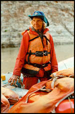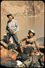 A midwesterner by birth, Georgie White Clark ventured to California on a bike as a teenage wife and mother. In 1944, Clark's daughter, Sommona Rose, was killed by a drunk driver, sending Clark into a tailspin. Worried friends dragged the despondent Clark to a Sierra Club lecture by Harry Aleson, and he inspired her to join him on a hike in the Grand Canyon in 1944 and on a "swim" of the Colorado River through the lower Grand Canyon in 1945. They survived both, and Georgie's lifelong love affair with the Colorado and the Grand Canyon resulted. In 1952, Clark became the first woman to row a boat through the entire Grand Canyon. For the next twenty years, she was the only woman commercial river runner working in the Grand Canyon. Her job choice (unusual for a woman of the era) and her penchant for self promotion made Georgie White Clark arguably the most famous person ever to run the Colorado River. Interviewed by Groucho Marx and Art Linkletter, appearing on To Tell the Truth, escorting famed photographer Josef Muench down multiple river trips, and narrating the documentary Call of the Canyon brought Clark a level of fame her river-running male coworkers could only envy. Source material for this story: 2006 Grand Canyon National Park Calendar printed by the Grand Canyon Association. MAIN INDEX | BACK TO HISTORICAL FIGURES
