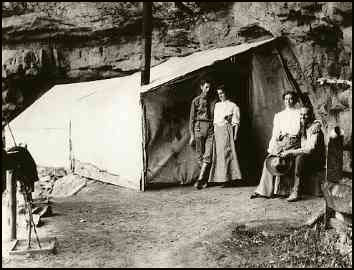 A prospector in search of ore, Louis Boucher came to the Grand Canyon between 1889 and 1891, although the dates of his birth and even his death are unknown. His quest brought him to Dripping Springs, a perennial water source in Hermit Canyon about nine miles west of Grand Canyon Village. Within short order, he built the Silver Bell Trail (today known as the Dripping Springs Trail) from the rim to his outpost; erected some tents and a small corral for horses, mules, and sheep; planted a garden and an orchard; built another trail, this one to the river (today's Boucher Trail); and constructed a second home near a copper vein about a mile from the Colorado River. Boucher never made a lot of money mining, but the reclusive eccentric tended to his claims in the Canyon for many years, perhaps believing the mother lode was just around the next butte, perhaps feeling more comfortable in his side canyon than on the bustling rim. But it is also known that the "Hermit of Grand Canyon" was a gracious host when tourists stopped by his canyon homes. Although the name of "Hermit Canyon" was likely in use before he arrived at the Grand Canyon, Hermits Rest, Hermit Road, Hermit Trail, and Hermit Camp are all named for Boucher. Scenes from Louis