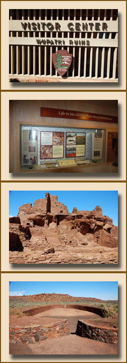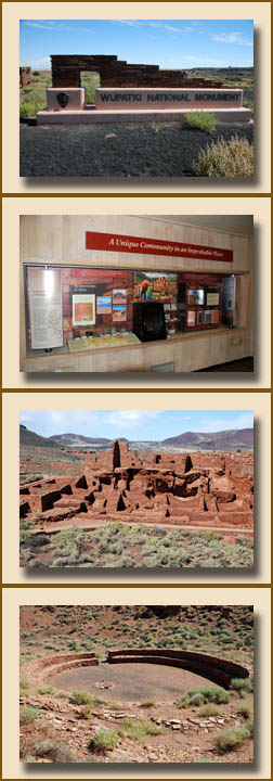 Wupatki National Monument is located just north of Flagstaff, Arizona, off Highway 89. The Visitor Center is open all year except December 25. Visitor Center hours are 9 A.M. - 5 P.M. MST November - April and 8 A.M. - 5 P.M. MST May - October. Monument admission fees are $5 per person, which are also good for entrance into Sunset Crater Volcano National Monument. Wupatki National Monument was established by President Calvin Coolidge on December 9, 1924, to preserve the Citadel and Wupatki pueblos. Less than 800 years ago, Wupatki was the tallest, largest, and perhaps the richest and most influential pueblo around. It was home to 85-100 people, and several thousand more lived within a day’s walk. Human history here spans at least 10,000 years. But only for a time, in the 1100s, was the landscape this densely populated. The eruption of nearby Sunset Crater Volcano a century earlier probably played a part. Families that lost their homes to ash and lava had to move. They discovered that the cinders blanketing lands to the north could hold moisture needed for crops. As the new agricultural community spread, small scattered homes were replaced by a few large pueblos, each surrounded by many smaller pueblos and pithouses. The lower left-hand picture above was a Kiva or meeting place. The lower right-hand picture above was a ball court. Wupatki, Wukoki, Lomaki, and other masonry pueblos emerged from bedrock. Trade networks expanded, bringing exotic items like turquoise, shell jewelry, copper bells, and parrots. Wupatki flourished as a meeting place of different cultures. Then, by about 1250, the people moved on. The Wupatki Pueblo Trail, starting at the Visitor Center, is a self-guided tour of the largest pueblo in the park. Don't miss the blowhole, a fascinating geologic feature. The trail is less than a half-mile round trip. For more information, visit their website at: http://www.nps.gov/wupa/index.htm |